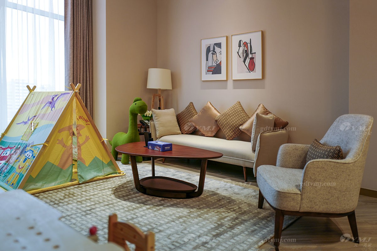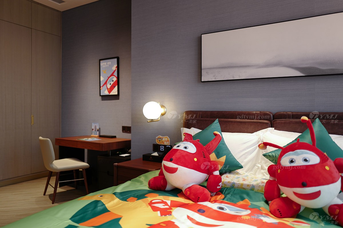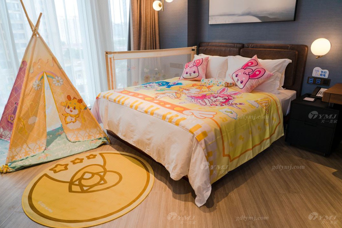 温馨有趣的主题亲子房分别以小朋友非常喜爱的儿童动画片《超级飞侠》、《猪猪侠》、《巴啦啦小魔仙》等系列为主题而进行精心设计打造,无论是客厅、卧室,还是洗手间的布置装饰,随处都可见到主题动画里活泼有趣勇敢的主角们的元素,主题亲子房还配备了相关的儿童帐篷、玩偶、小滑梯,小动物坐凳等等,通过这些透露着爱与细致、并融入了主题元素的活动家具软装的点缀装饰,让房间内瞬间充满活力与趣味性,营造出一个既温馨自然又充满趣味与想象力、大人和小孩都能乐享其中的美好空间。