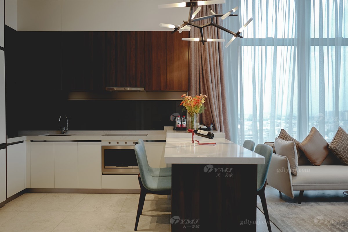 全景套房客厅两面分别拥有超大落地窗,光线充足,视野开阔,薄薄的轻纱窗帘,隔绝了外界的喧嚣与尘埃,更是增添了房间内一丝悠闲浪漫的氛围;整个空间的色调,由浅到深,完美融合为一体,客餐厅互相连通,与精心打造的一体开放式餐厨空间,在无形中组合成一个开放、简约、高雅的功能实用性很强的生活区域,卧室同样拥有超大落地玻璃窗,景观视野广阔,深色的墙面背景装饰,棕褐色皮艺床屏,时尚球形灯光造型,营造了一种简约时尚,静谧稳重的氛围。