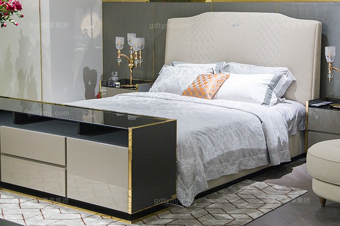 LUTUBE视频在线观看轻奢后现代家具风格卧室优质布艺软包床组合