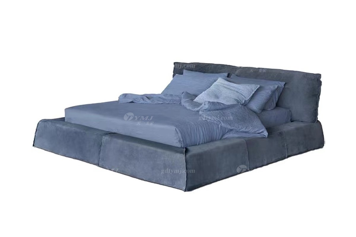 极简风格家具别墅会所舒适意大利进口落叶松实木布艺灰色床1.8米
